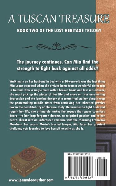 The journey continues. Can Mia find the strength to fight back against all odds?Walking in on her husband in bed with a 20-year-old was the last thing Mia Logan expected when she arrived home from a wonderful sister trip in Ireland. Now a single mom with a broken heart and low self-esteem, she must pick up the pieces of her life and move on. Her unrelenting depression and the looming danger of a committed stalker almost keep the peacemaking middle sister from retrieving her inherited jewelry box in the beautiful city of Florence, Italy. Determined to fight back and regain her life, she ultimately makes the voyage that opens countless doors-to her long-forgotten dreams, to reignited passion and to her heart. Thrust into unforeseen romance with the charming Francesco Marchesi, her cousin Maria's trusted lawyer, Mia faces her greatest challenge yet: learning to love herself exactly as she is.