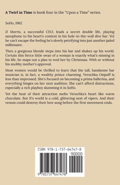 SoHo, 1962 JJ Morris, successful CEO, leads a secret double life, playing saxophone to his heart's content in his hole-in-the-wall dive bar. Yet he can't escape the feeling he's slowly petrifying into just another jaded millionaire. Then a gorgeous blonde steps into his bar and shakes up his world. Certain this fierce little swan of a woman is exactly what's missing in his life, he maps out a plan to wed her by Christmas. With or without his snobby mother's approval. Most women would be thrilled to learn that the tall, handsome bar musician is, in fact, a wealthy prince charming. Verochka Osipoff is less than impressed. She's focused on becoming a prima ballerina, and everything hinges on her next audition. She can't afford distractions, especially a rich playboy slumming it in SoHo. Yet the heat of their attraction melts Verochka's heart like warm chocolate. But JJ's world is a cold, glittering nest of vipers. And their venom could destroy their love song before the first movement ends.