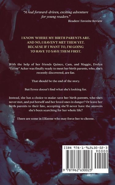 "A real forward-driven, exciting adventure for young readers." ~Readers' Favorite Review I know where my birth parents are. And no, I haven't met them yet. Because if I want to, I'm going to have to save them first. ***** With the help of her friends Quince, Cam, and Maggie, Evelyn "Eevee" Acker was finally ready to meet her birth parents, who, she's recently discovered, are fae. That should be the end of the story. But Eevee doesn't find what she's looking for. Instead, she has a choice to make: save her birth parents, who she's never met, and put herself and her loved ones in danger? Or leave her birth parents to their fate, accepting she'll never have the answers she's been searching for her whole life? There are some in Elfaeme who may force her to choose.