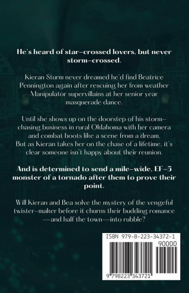 He's heard of star-crossed lovers, but never storm-crossed. Kieran Sturm never dreamed he'd find Beatrice Pennington again after rescuing her from Manipulator supervillains at her senior year masquerade dance. Until she shows up on the doorstep of his storm-chasing business in rural Oklahoma with her camera and combat boots like a scene from a dream. But as Kieran takes her on the chase of a lifetime, it's clear someone isn't happy about their reunion. And is determined to send a mile-wide, EF-5 monster of a tornado after them to prove their point. Will Kieran and Bea solve the mystery of the vengeful twister-maker before it churns their budding romance-and half the town-into rubble?