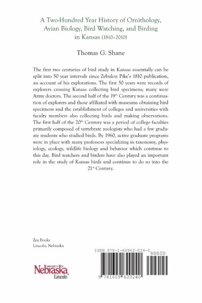Explorers, US Army doctors, museum collectors, zoology professors, graduate students, bird watchers, and birders have all contributed to the study of birds in the state of Kansas. This is a history of the people--amateurs and professionals--whose contributions and publications have enriched the study of Kansas birds since 1810.