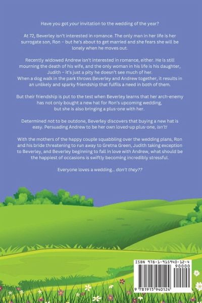 Have you got your invitation to the wedding of the year? At 72, Beverley isn't interested in romance. The only man in her life is her surrogate son, Ron - but he's about to get married and she fears she will be lonely when he moves out. Recently widowed Andrew isn't interested in romance, either. He is still mourning the death of his wife, and the only woman in his life is his daughter, Judith - it's just a pity he doesn't see much of her. When a dog walk in the park throws Beverley and Andrew together, it results in an unlikely and sparky friendship that fulfils a need in both of them. But their friendship is put to the test when Beverley learns that her arch-enemy has not only bought a new hat for Ron's upcoming wedding, but she is also bringing a plus-one with her. Determined not to be outdone, Beverley discovers that buying a new hat is easy. Persuading Andrew to be her own loved-up plus-one, isn't! With the mothers of the happy couple squabbling over the wedding plans, Ron and his bride threatening to run away to Gretna Green, Judith taking exception to Beverley, and Beverley beginning to fall in love with Andrew, what should be the happiest of occasions is swiftly becoming incredibly stressful. Everyone loves a wedding... don't they??