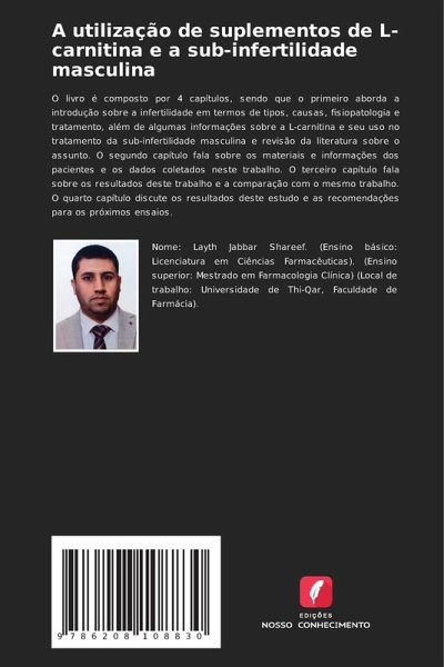 O livro é composto por 4 capítulos, sendo que o primeiro aborda a introdução sobre a infertilidade em termos de tipos, causas, fisiopatologia e tratamento, além de algumas informações sobre a L-carnitina e seu uso no tratamento da sub-infertilidade masculina e revisão da literatura sobre o assunto. O segundo capítulo fala sobre os materiais e informações dos pacientes e os dados coletados neste trabalho. O terceiro capítulo fala sobre os resultados deste trabalho e a comparação com o mesmo trabalho. O quarto capítulo discute os resultados deste estudo e as recomendações para os próximos ensaios.