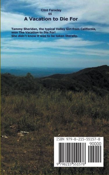 Large print for those whose eyes are as bad as mine Tammy Sheridan, a Valley Girl, like, you know, those in the eighties, won a vacation to die for in a contest. First stop was Cancun, second stop, Managua, third stop, Bocas del Toro, forth stop, Cartagena, fifth stop, Rio de Janiero. She didn't make the fourth stop. Tammy was considered a little weird, but was liked. No one had any reason to kill her. Somebody did.