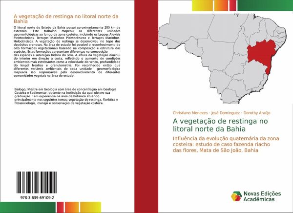 O litoral norte do Estado da Bahia possui aproximadamente 200 km de extensão. Este trabalho mapeou as diferentes unidades geomorfológicas ao longo da zona costeira, incluindo os Leques Aluviais Pleistocênicos, Terraços Marinhos Pleistocênicos e Terraços Marinhos Holocêncicos. A vegetação de restinga se desenvolveu no topo dos depósitos arenosos. Na área de estudo foi possível o reconhecimento de oito formações vegetacionais baseado na composição e estrutura das espécies. Estas formações apresentam diferenças na composiçãodas espécies e saturação hídrica do solo. A altura da vegetação diminui do interior em direção a costa, refletindo o aumento de condições ambientais mais estressantes como a velocidade do vento, profundidade do lençol freático e granulometria. Foi reconhecido então que diferentes variáveis ambientais de cada unidade geomorfológica mapeada são responsáveis pelo desenvolvimento de diferentes comunidades vegetais na área de estudo.