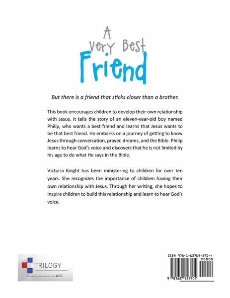 But there is a friend that sticks closer than a brother. This book encourages children to develop their own relationship with Jesus. It tells the story of an eleven-year-old boy named Philip, who wants a best friend and learns that Jesus wants to be that best friend. He embarks on a journey of getting to know Jesus through conversation, prayer, dreams, and the Bible. Philip learns to hear God's voice and discovers that he is not limited by his age to do what He says in the Bible.