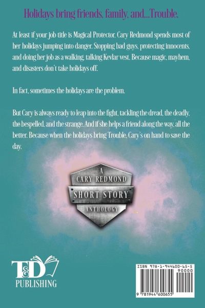 Holidays bring friends, family, and...Trouble. At least if your job title is Magical Protector. Cary Redmond spends most of her holidays jumping into danger. Stopping bad guys, protecting innocents, and doing her job as a walking, talking Kevlar vest. Because magic, mayhem, and disasters don't take holidays off. In fact, sometimes the holidays are the problem. But Cary is always ready to leap into the fight, tackling the dread, the deadly, the bespelled, and the strange. And if she helps a friend along the way, all the better. Because when the holidays bring Trouble, Cary's on hand to save the day. Don't miss this year of Cary Redmond adventures all in one collection. Includes Cary and the Cursed Jack-O'-Lantern Cary Holidays Cary's Galentine's Day Cary's Leprechaun Troubles Cary's Beltane Night Out