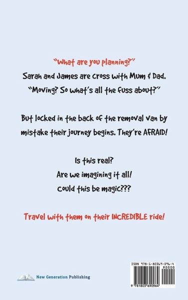 "What are you planning?" Sarah and James are cross with Mum & Dad. "Moving? So what's all the fuss about?" But locked in the back of the removal van by mistake their journey begins. They're AFRAID! Is this real? Are we imagining it all! Could this be magic??? ¿Travel with them on their INCREDIBLE ride! This book is written as Middle Fiction 9-13 , 18,000 plus words .... With a 2nd/3rd + book to come if this one is well received. The sequel is in production. I'm sure you realised that it can be enjoyed as a young pragmatic story, an older more subtle story for the older child and as a story with an underlying psychological message for the older teen.