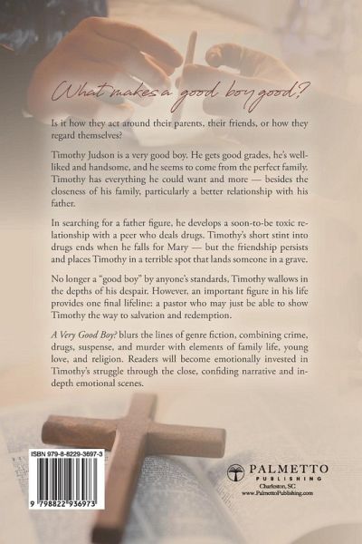 Timothy Judson is a 16-year-old blessed with everything he needs to live a fulfilling life. But when he feels ignored by his parents, Timothy searches for a friend in a bad apple... and soon learns how his decision has life-altering effects. What makes a "good" boy good? Is it how they act around their parents, their friends, or how they regard themselves? Timothy Judson is a very good boy. He gets good grades, he's well-liked and handsome, and he seems to come from the perfect family. Timothy has everything he could want and more - besides the closeness of his family, particularly a better relationship with his father. In searching for a father figure, he develops a soon-to-be toxic relationship with a peer who deals drugs. Timothy's short stint into drugs ends when he falls for Mary - but the friendship persists and places Timothy in a terrible spot that lands someone in a grave. No longer a "good boy" by anyone's standards, Timothy wallows in the depths of his despair. However, an important figure in his life provides one final lifeline: a pastor who may just be able to show Timothy the way to salvation and redemption. A Very Good Boy? blurs the lines of genre fiction, combining crime, drugs, suspense, and murder with elements of family life, young love, and religion. Readers will become emotionally invested in Timothy's struggle through the close, confiding narrative and in-depth emotional scenes. This book makes a great addition to teens' reading shelves - but it's also a good purchase for parents, grandparents, teachers, and pastors to use as an example of choices and their consequences.