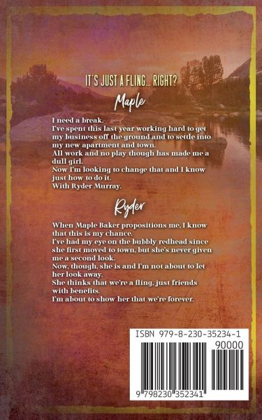 It's just a fling... right? Maple: I need a break. I've spent this last year working hard to get my business off the ground and to settle into my new apartment and town. All work and no play though has made me a dull girl. Now I'm looking to change that and I know just how to do it. With Ryder Murray. Ryder When Maple Baker propositions me, I know that this is my chance. I've had my eye on the bubbly redhead since she first moved to town, but she's never given me a second look. Now, though, she is and I'm not about to let her look away. She thinks that we're a fling, just friends with benefits. I'm about to show her that we're forever.