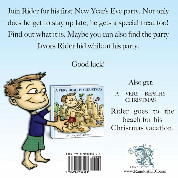 Join Rider for his first New Year's Eve party. Not only does he get to stay up late but he gets a special treat too! Find out what it is. Maybe you can also find the party favors Rider hid while at his party.