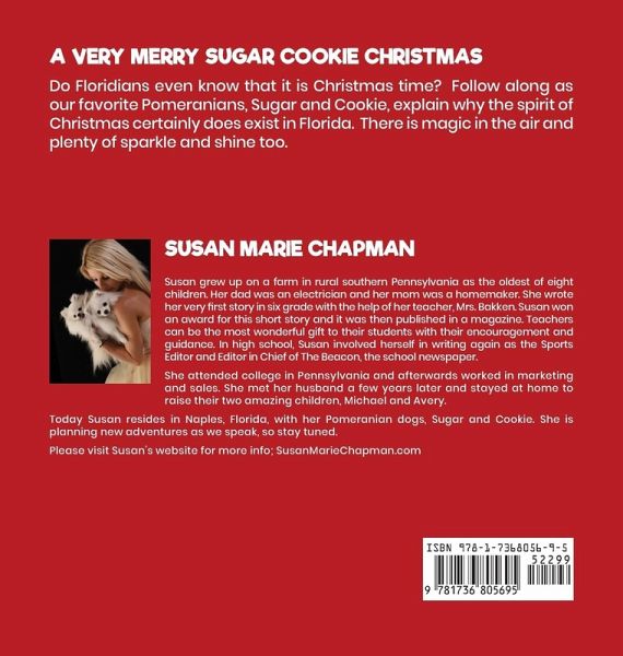 Susan Marie Chapman grew up on a farm in rural Pennsylvania as the oldest of eight children. She has always had a special connection with animals and children. Today she resides in Florida with her two furry babies, Sugar and Cookie.