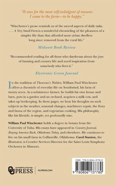In the tradition of Thoreau's Walden, William Paul Winchester offers a chronicle of everyday life on Southwind, his farm of twenty acres. As a subsistence farmer, he builds his own house and barn, puts in a garden and an orchard, acquires a milk cow, and takes up beekeeping. In these pages, we hear his thoughts on such subjects as the weather, seasonal changes, machinery repair, the flora and fauna of the region, and vegetarian cooking. His philosophy, like his lifestyle, is simple, yet profoundly wise. William Paul Winchester graduated from the University of Tulsa with a degree in botany. His essays have appeared in Country Journal, Buying America Back, Oklahoma Today, and elsewhere. He continues to live on his small farm in Collinsville, Oklahoma Carol Stanton is Creative Services Director for the Saint Louis Symphony Orchestra in Missouri.