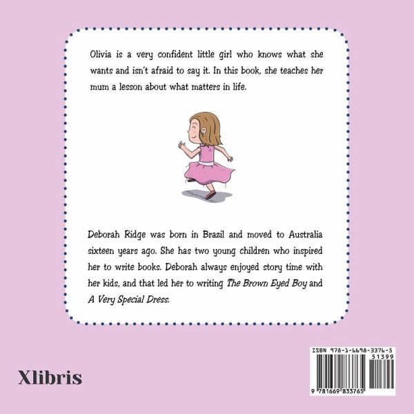 Olivia is a very confident little girl who knows what she wants and isn't afraid to say it. In this book, she teaches her mum a lesson about what matters in life.