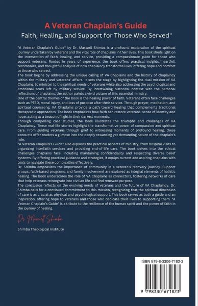 A Veteran Chaplain's Guide "A Veteran Chaplain's Guide" by Dr. Maxwell Shimba is a profound exploration of the spiritual journey undertaken by veterans and the vital role of chaplains in their lives. This book sheds light on the intersection of faith, healing, and service, providing a compassionate guide for those who support veterans. Rooted in years of experience, the book offers practical insights, heartfelt testimonies, and thoughtful analysis of how chaplaincy transforms lives, offering hope and comfort to those who served. The book begins by addressing the unique calling of VA Chaplains and the history of chaplaincy within the military and veterans' affairs. It sets the stage by highlighting the dual mission of VA Chaplains: to minister to the spiritual needs of veterans while also addressing the psychological and emotional scars left by military service. By intertwining historical context with the personal reflections of chaplains, the author paints a vivid picture of this essential ministry. One of the central themes of the book is the healing power of faith. Veterans often face challenges such as PTSD, moral injury, and loss of purpose after their service. Through prayer, meditation, and spiritual counseling, VA Chaplains provide a path toward healing that complements traditional therapeutic approaches. The book emphasizes how faith can restore veterans' sense of identity and hope, acting as a beacon of light in their darkest moments. Through compelling case studies, the book illustrates the triumphs and challenges of VA Chaplaincy. These real-life stories highlight the transformative power of compassion and spiritual care. From guiding veterans through grief to witnessing moments of profound healing, these accounts offer readers a glimpse into the deeply rewarding yet demanding nature of the chaplain's role. "A Veteran Chaplain's Guide" also explores the practical aspects of ministry, from hospital visits to organizing interfaith services and providing end-of-life care. The book delves into the ethical challenges chaplains face, including maintaining confidentiality and respecting diverse belief systems. By offering practical guidance and strategies, it equips current and aspiring chaplains with tools to navigate these complexities effectively. Dr. Shimba emphasizes the importance of community in a veteran's recovery journey. Support groups, faith-based programs, and family involvement are explored as integral elements of holistic healing. The book underscores the role of VA Chaplains as connectors, fostering networks of care that help veterans reintegrate into civilian life and find renewed purpose. The conclusion reflects on the evolving needs of veterans and the future of VA Chaplaincy. Dr. Shimba calls for a continued commitment to this mission, recognizing that the spiritual dimension of care is as crucial as physical and psychological support. This book serves as both a guide and an inspiration, offering hope to veterans and those who dedicate their lives to supporting them. "A Veteran Chaplain's Guide" is a tribute to the resilience of the human spirit and the power of faith in the journey of healing.