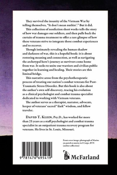 "They survived the insanity of the Vietnam War by telling themselves, "It don't mean nuthin'." But it did. This collection of nonfiction short works tells the story of how war damages our soldiers, and then pulls back the curtain of trauma treatment to offer a rare glimpse of how these veterans strive to integrate those combat experiences and recover. Though intimately revealing the human shadow and darkness of war, this is a hopeful book: it is about transformation, restoring meaning and connection, and navigating the archetypal hero's journey as survivors come home from war. It seeks to unite our warriors and civilian public together in learning and healing. Their stories are this liminal bridge. This narrative tapestry arose from the psychotherapeutic process of treating our nation's combat veterans for Post-Traumatic Stress Disorder. But this book is also about the author's own self-discovery, tracing his evolution as a clinical psychologist and combat trauma specialist dedicated to working with Vietnam veterans. In this book, the author serves as a therapist, narrator, advocate, keeper of veterans' sacred "dark" wisdom, and fellow traveler."--