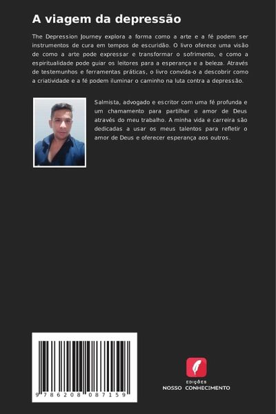 The Depression Journey explora a forma como a arte e a fé podem ser instrumentos de cura em tempos de escuridão. O livro oferece uma visão de como a arte pode expressar e transformar o sofrimento, e como a espiritualidade pode guiar os leitores para a esperança e a beleza. Através de testemunhos e ferramentas práticas, o livro convida-o a descobrir como a criatividade e a fé podem iluminar o caminho na luta contra a depressão.