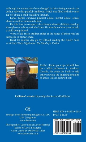 Although the names have been changed in this stirring memoir, the author relives his painful childhood, which was filled with the worst type of abuse a child could live through. Lance Parker survived physical abuse, mental abuse, sexual abuse, as well as emotional abuse. He tells how to recognize the changes abused children could go through over a short period of time. He also shows how you can help a child being abused. Worst of all, these children suffer at the hands of those who are supposed to protect them. Don't let another day go by without reading the timely book A Victim's Worst Nightmare: The Mind of a Victim. Author Bio: Keith L. Ryder grew up and still lives on a Métis settlement in northern Canada. He wrote the book to help others survive the lingering brutality of abuse. This is his first book. Publisher's website: http://sbprabooks.com/KeithRyder