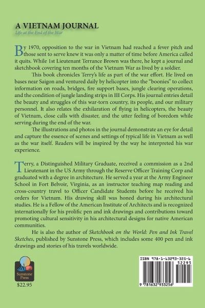 By 1970, opposition to the war in Vietnam had reached a fever pitch and those sent to serve knew it was only a matter of time before America called it quits. While 1st Lieutenant Terrance J. Brown was there, he kept a journal and sketchbook covering ten months of the Vietnam War as lived by a soldier. This book chronicles Terry's life as part of the war effort. He lived on bases near Saigon and ventured daily by helicopter into the "boonies" to collect information on roads, bridges, fire support bases, jungle clearing operations, and the condition of jungle landing strips in III Corps. His journal entries detail the beauty and struggles of this war-torn country, its people, and our military personnel. It also relates the exhilaration of flying in helicopters, the beauty of Vietnam, close calls with disaster, and the utter feeling of boredom while serving during the end of the war. The illustrations and photographs in the journal demonstrate an eye for detail and capture the essence of scenes and settings of typical life in Vietnam as well as the war itself. Readers will be inspired by the way he interpreted his war experience.