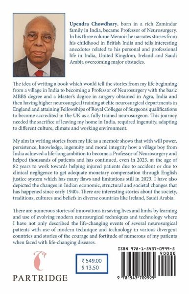 The idea of writing a book which would tell the stories from my life beginning from a village in India to becoming a Professor of Neurosurgery with the basic MBBS degree and a Master's degree in surgery obtained in Agra, India and then having higher neurosurgical training at elite neurosurgical departments in England and attaining Fellowships of Royal Colleges of Surgeons qualifications to become accredited in the UK as a fully trained neurosurgeon. The journey till here needed considerable sacrifice and overcoming several obstacles such as leaving my home in India as well as my parents, grandfather, brothers and sisters and close friends. It also required ingenuity, adapting to different culture, climate and working environment after leaving the cosy life as a child among my well-to-do extended family. My aim in writing stories from my life as a memoir shows that with will power, persistence, knowledge, ingenuity and moral integrity how a village boy from India achieved a life-long ambition to become a Professor of Neurosurgery and helped thousands of patients and has continued, even in 2023, at the age of 82 years to work towards helping injured patients due to accident or due to clinical negligence to get adequate monetary compensation through English justice system which has many flaws and limitations still in 2023. I also believe that as my life story begins at the era of Quit India movement of 1942 and continues through major socio-economic changes during the post-independence period and then further through my life journey in England, Ireland, Saudi Arabia, it will be useful to other people to read about my experiences. In these books I have also depicted the changes in Indian economic, structural and societal changes that has happened in previous 80 years. There are numerous stories of innovations in saving lives and limbs by learning and use of evolving modern neurosurgical techniques and technology where I have not only described the life-changing events of several neurosurgical patients with use of modern technique and technology in various divergent countries, but have also depicted the social, economic and cultural aspect of life in these diverse countries and the courage and fortitude of numerous of my patients when faced with life-changing diseases.