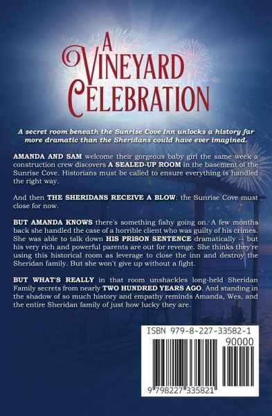 A secret room beneath the Sunrise Cove Inn unlocks a history far more dramatic than the Sheridans could have ever imagined. Amanda and Sam welcome their gorgeous baby girl the same week a construction crew discovers a sealed-up room in the basement of the Sunrise Cove. Historians must be called to ensure everything is handled the right way. And then the Sheridans receive a blow: the Sunrise Cove must close for now. But Amanda knows there's something fishy going on. A few months back she handled the case of a horrible client who was guilty of his crimes. She was able to talk down his prison sentence dramatically -- but his very rich and powerful parents are out for revenge. She thinks they're using this historical room as leverage to close the inn and destroy the Sheridan family. But she won't give up without a fight. But what's really in that room unshackles long-held Sheridan Family secrets from nearly two hundred years ago. And standing in the shadow of so much history and empathy reminds Amanda, Wes, and the entire Sheridan family of just how lucky they are. Dive into the nineteenth book of the Vineyard Sunset Series, in which a vibrant cast of characters live out their dreams on Martha's Vineyard. This is the story of the Sheridan and Montgomery siblings, a heartwarming journey of friendship, loss, and love.