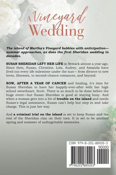 The island of Martha's Vineyard bubbles with anticipation-- summer approaches, as does the first Sheridan wedding in decades. Susan Sheridan left her life in Newark almost a year ago. Since then, Susan, Christine, Lola, Audrey, and Amanda have lived out every life milestone under the sun-- from divorce to new loves, illnesses, to second-chance romances, and beyond. Now, after a year of cancer and healing, it's time for Susan Sheridan to have her happily-ever-after with her high school sweetheart, Scott. There is so much to be done before the huge event--but Susan Sheridan is good at staying busy. And when a woman gets into a bit of trouble on the island and needs Susan's legal assistance, Susan can't help but step in and take charge. This is just her way. And a criminal trial on the island is set to keep Susan and the rest of the Sheridan clan on their toes. It is set to be another spring and summer of unforgettable memories. Dive into this new women's fiction series by heading to Martha's Vineyard-- a backdrop of white sand and crystal blue waters that follow the stories of the Sheridan clan. A heartwarming journey of friendship, loss, and love that will have you wanting the next book. For fans of Caroline Brown, Debbie Macomber, and Susan Mallory.