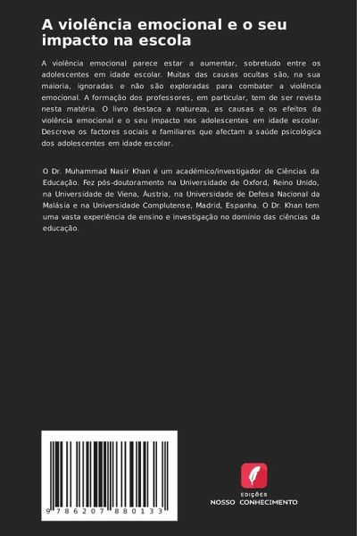 A violência emocional parece estar a aumentar, sobretudo entre os adolescentes em idade escolar. Muitas das causas ocultas são, na sua maioria, ignoradas e não são exploradas para combater a violência emocional. A formação dos professores, em particular, tem de ser revista nesta matéria. O livro destaca a natureza, as causas e os efeitos da violência emocional e o seu impacto nos adolescentes em idade escolar. Descreve os factores sociais e familiares que afectam a saúde psicológica dos adolescentes em idade escolar.