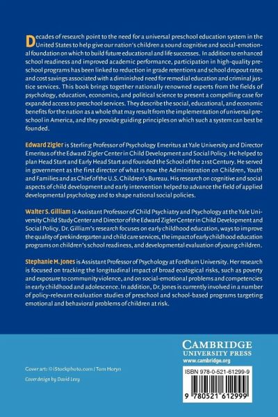 Edward Zigler and his colleagues have brought together renowned experts from the fields of psychology, education, social policy, and political science to present a compelling and well-supported case for expanded access to preschool services. This book describes the social, educational, and economic benefits for the nation as a whole that would result from the implementation of a universal access preschool program in America. It stands alone in its field for its accessibility, clarity, timeliness, and ability to combine a solid research background with practical recommendations for program design and implementation.