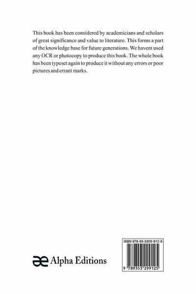 This book has been considered by academicians and scholars of great significance and value to literature. This forms a part of the knowledge base for future generations. We have represented this book in the same form as it was first published. Hence any marks seen are left intentionally to preserve its true nature.