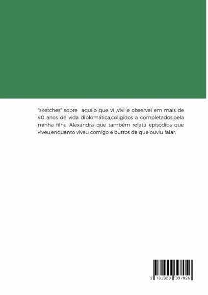 A VIDA E O MUNDO COMO EU A VIVI E OBSERVEI DURANTE MAIS DE QUARENTA ANOS DE CARREIRA DIPLOMÁTICA. RELATO EPISÓDIOS SINGULARES,ALGUNS GROTESCOS,OUTROS INSÓLITOS QUE TIVE OCASIÃO DE OLHAR DE PERTO E ATÉ PARTICIPAR ,ENVOLVENDO PERSONAGENS HISTÓRICAS DO SÉCULO XX.DESCREVO LUGARES ONDE ESTIVE E COSTUMES DE QUE ME DEI CONTA.NO FUNDO É UM LIVRO SOBRE A VIDA.