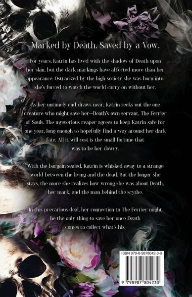 Marked by Death. Saved by a Vow. For years, Katrin has lived with the shadow of Death upon her skin, but the dark markings have affected more than her appearance. Ostracized by the high society she was born into, she's forced to watch the world carry on without her. As her untimely end draws near, Katrin seeks out the one creature who might save her-Death's own servant, The Ferrier of Souls. The mysterious reaper agrees to keep Katrin safe for one year, long enough to hopefully find a way around her dark fate. All it will cost is the small fortune that was to be her dowry. With the bargain sealed, Katrin is whisked away to a strange world between the living and the dead. But the longer she stays, the more she realizes how wrong she was about Death, her mark, and the man behind the scythe. In this precarious deal, her connection to The Ferrier might be the only thing to save her once Death comes to collect what's his. Fans of Belladonna and A Deal with the Elf King will fall in love with this atmospheric and enchanting fantasy romance inspired by Welsh mythology.
