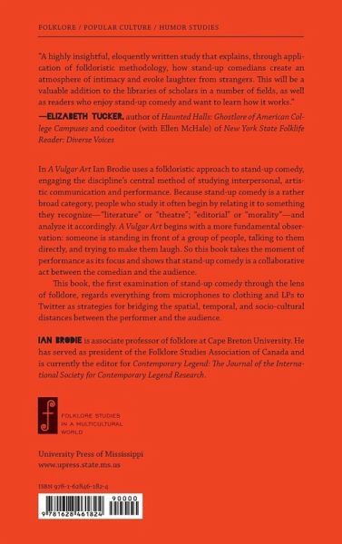 THE FIRST EXAMINATION OF STAND-UP COMEDY THROUGH THE LENS OF FOLKLORE In A Vulgar Art Ian Brodie uses a folkloristic approach to stand-up comedy, leveraging the discipline's central method of studying interpersonal, artistic communication and performance. Because stand-up comedy is a rather broad category, people who study it often begin by relating it to something they recognize such as literature or theatre, and analyze it accordingly. A Vulgar Art begins with a more fundamental observation: someone is standing in front of a group of people, talking to them directly, and trying to make them laugh. So this book takes the moment of performance as its focus and shows that stand-up comedy is a collaborative act between the comedian and the audience. Although the form of talk on the stage resembles talk among friends and intimates in social settings, stand-up comedy remains a profession. As such, it requires performance outside of the comedian's own community to gain larger and larger audiences. How do comedians re-create that atmosphere of intimacy in a roomful of strangers? This book regards everything from microphones to clothing and LPs to twitter as strategies for bridging the spatial, temporal, and sociocultural distances between the performer and the audience. Ian Brodie, Sydney, Nova Scotia, Canada, is associate professor of folklore at Cape Breton University. He has served as president of the Folklore Studies Association of Canada and is currently the editor for Contemporary Legend: The Journal of the International Society for Contemporary Legend Research.
