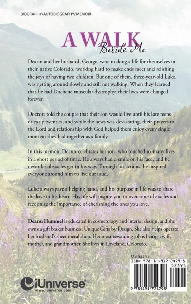 Deann and her husband, George, were making a life for themselves in their native Colorado, working hard to make ends meet and relishing the joys of having two children. But one of them, three-year-old Luke, was getting around slowly and still not walking. When they learned that he had Duchene muscular dystrophy, their lives were changed forever. Doctors told the couple that their son would live until his late teens or early twenties, and while the news was devastating, their prayers to the Lord and relationship with God helped them enjoy every single moment they had together as a family. In this memoir, Deann celebrates her son, who touched so many lives in a short period of time. He always had a smile on his face, and he never let obstacles get in his way. Through his actions, he inspired everyone around him to live out loud. Luke always gave a helping hand, and his purpose in life was to share the love in his heart. His life will inspire you to overcome obstacles and recognize the importance of cherishing the ones you love.