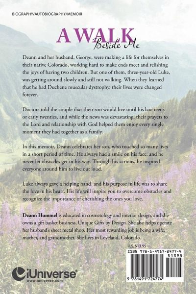Deann and her husband, George, were making a life for themselves in their native Colorado, working hard to make ends meet and relishing the joys of having two children. But one of them, three-year-old Luke, was getting around slowly and still not walking. When they learned that he had Duchene muscular dystrophy, their lives were changed forever. Doctors told the couple that their son would live until his late teens or early twenties, and while the news was devastating, their prayers to the Lord and relationship with God helped them enjoy every single moment they had together as a family. In this memoir, Deann celebrates her son, who touched so many lives in a short period of time. He always had a smile on his face, and he never let obstacles get in his way. Through his actions, he inspired everyone around him to live out loud. Luke always gave a helping hand, and his purpose in life was to share the love in his heart. His life will inspire you to overcome obstacles and recognize the importance of cherishing the ones you love.