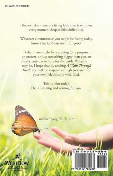 Discover that there is a living God that is with you every moment despite life’s difficulties. Whatever circumstance you might be facing today, know that God can use it for good. Perhaps you might be searching for a purpose, an answer, or just something bigger than you, or maybe you’re searching for the truth. Whatever it may be, I hope that by reading A Walk Through Faith, you will be inspired enough to search for your own relationship with God. Talk to him today. He is listening and waiting for you.