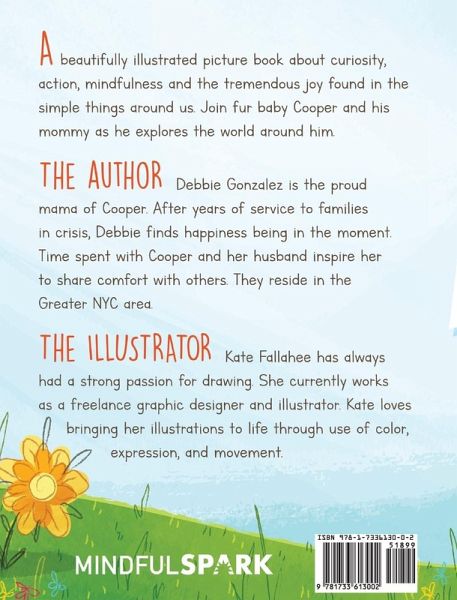 A beautifully illustrated picture book about curiosity, action, mindfulness and the tremendous joy found in the simple things around us. Join fur baby Cooper and his mommy as he explores the world around him. Immerse into the adventure of this imaginative and playful dog with his loving mommy. Cooper's enthusiasm taking in his surroundings is sure to bring a smile to all who read this children's book. The warmth and security he experiences with his mommy is heartwarming. Looking for a feel good story to make you smile? Pick up a copy of A Walk with Cooper today.