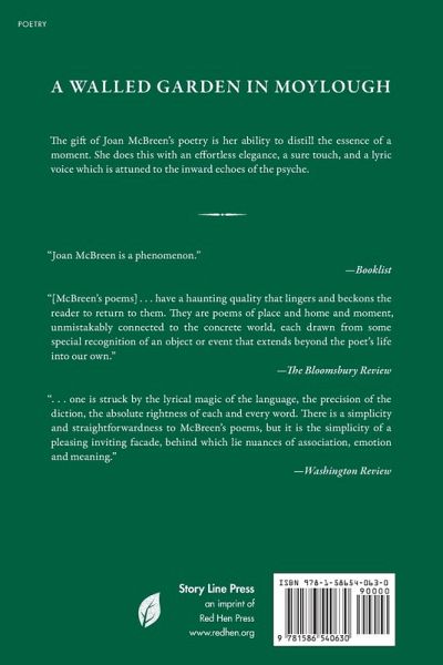 A Walled Garden in Moylough demonstrates the ultimate gift of Joan McBreen’s poetry: her ability to distill the essence of a moment. She does this with an effortless elegance, a sure touch, and a lyric voice which is attuned to the inward echoes of the psyche.