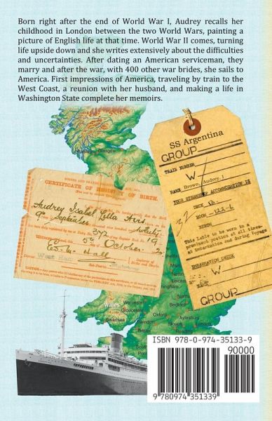 My Mother, Audrey Brown, kept journals and later wrote down her memoirs. Aside from the fact that she is a very good writer, the circumstances make for an interesting story and a good read. Born right after the end of World War 1, she spent her childhood in a London not fully recovered from war and with little time to breathe, sensing another on its way. Without intending to give a comprehensive picture of life in London at the time, she succeeds in painting a picture of what it must have been and felt like. The war comes and Audrey describes life in a country under attack. During the war she meets an American serviceman, Jake Brown, who she marries. After the war, having not seen her husband for almost a year, leaving her family and friends behind, Audrey sailed with 400 other war brides to America. First impressions of America, traveling by train to the West Coast, a reunion with her husband, and settling into life in Washington State finish out her memoirs.