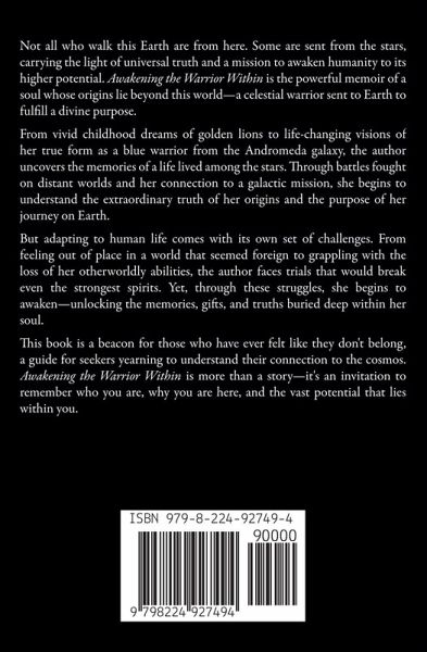 A Warrior In Waiting is the powerful memoir of a soul whose origins lie beyond this world-a celestial warrior sent to Earth with a divine mission to awaken truth and ignite higher potential in humanity. From vivid visions to soul-deep remembrance, the author uncovers the extraordinary reality of her cosmic roots and the purpose behind her journey on Earth. As she sheds layers of programming and awakens long-buried gifts, a clearer understanding of Earth's true nature begins to unfold. Adapting to life in a human body hasn't been easy. The challenges of living in a world disconnected from Source tested her strength and resolve. But through the struggle, awakening came-revealing the truth encoded within her all along. A Warrior In Waiting is more than a story. It's a declaration. A call to remember who you are, why you came, and the sacred power that lives within you.