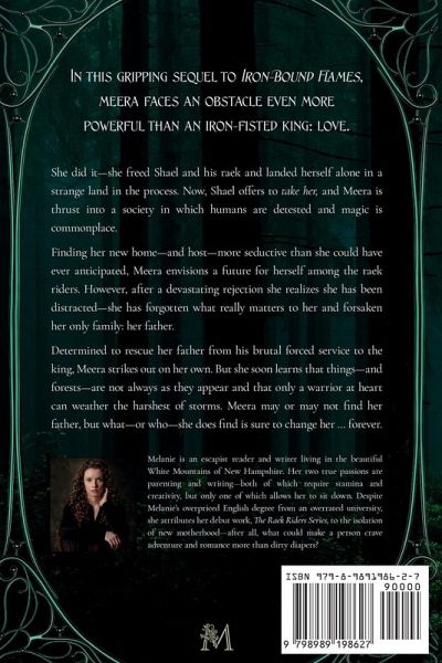 In this gripping sequel to Iron-Bound Flames, Meera faces an obstacle even more powerful than an iron-fisted king: love. She did it-she freed Shael and his raek and landed herself alone in a strange land in the process. Now, Shael offers to take her, and Meera is thrust into a society in which humans are detested and magic is commonplace. Finding her new home-and host-more seductive than she could have ever anticipated, Meera envisions a future for herself among the raek riders. However, after a devastating rejection she realizes she has been distracted-she has forgotten what really matters to her and forsaken her only family: her father. Determined to rescue her father from his brutal forced service to the king, Meera strikes out on her own. But she soon learns that things-and forests-are not always as they appear and that only a warrior at heart can weather the harshest of storms. Meera may or may not find her father, but what-or who-she does find is sure to change her ... forever.