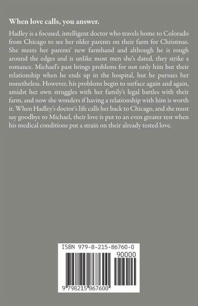 Hadley is a focused, intelligent doctor who travels home from Chicago to Colorado for Christmas when she meets her parents' new farmhand. They immediately strike a romance. But Michael's past brings problems and he knows it will never work out. However, his attraction to her is more than he's ever had for another, and he pursues her in spite of his reservations. When Hadley's doctor life calls, and she must return to Chicago, she finds out secrets about Michael that she never imagined.