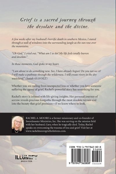 Grief is a sacred journey through the desolate and the divine. A few weeks after my husband's horrific death in southern Mexico, I stared through a wall of windows into the surrounding jungle as the sun rose over the mountains. "Oh God," I cried out. "What am I to do? My life feels totally barren and desolate." In those moments, God spoke to my heart. "I am about to do something new. See, I have already begun! Do you not see it? I will make a pathway through the wilderness. I will create rivers in the dry wasteland." (Isaiah 43:19 NLT) Whether you are reeling from unexpected loss or whether you love someone suffering the agony of grief, Rachel's powerful story has something for you. Rachel's story is infused with life-giving insights. Her personal journey of sorrow reveals precious footpaths through the most desolate terrain and into the beauty that grief promises-if we know where to look.