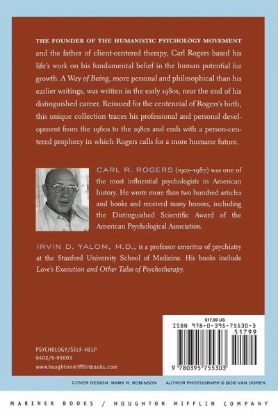 A Way of Being was written in the early 1980s, near the end of Carl Rogers's career, and serves as a coda to his classic On Becoming a Person. More personal and philosophical than his earlier writings, it traces his professional and personal development and ends with a person-centered prophecy, in which he predicts a future changing in the direction of more humaneness. Now, fifteen years later, the psychiatrist and best-selling author Dr. Irvin Yalom revisits A Way of Being, offering a contemporary view of this remarkable work.