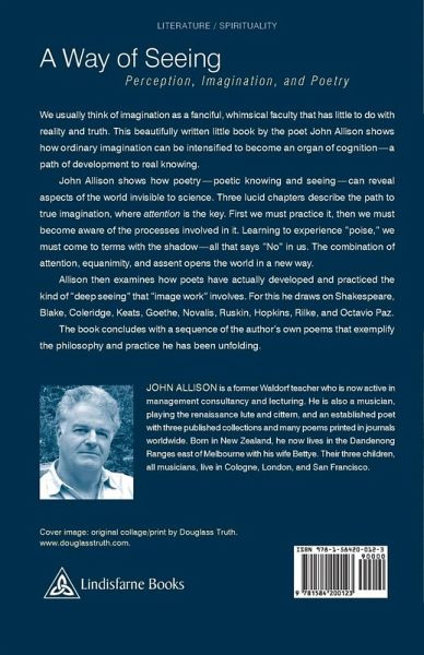 W e usually think of imagination as a fanciful, whimsical faculty that has little to do with reality and truth. This beautifully written book by the Australian poet John Allison shows how ordinary imagination can be intensified to become an organ of cognition -- a path of development to real knowing. Allison shows how poetry -- poetic knowing and seeing -- can reveal aspects of the world invisible to science. Three lucid chapters describe the path to true imagination, where attention is the key. First we must practice it, then we must become aware of the processes involved in it. Learning to experience "poise, " we must come to terms with the shadow -- or all that says "No" in us. The combination of attention, equanimity and assent opens the world in a new way. Allison then examines how poets have actually developed and practiced the kind of "deep seeing" that "image work" involves. For this he draws on William Shakespeare, William Blake, Samuel Taylor Coleridge, John Keats, Johann Wolfgang von Goethe, Novalis, John Ruskin, Gerard Manley Hopkins, Rainer Maria Rilke, and Octavio Paz. The book concludes with a sequence of the author's own poems that exemplify the philosophy and practice he has been unfolding.