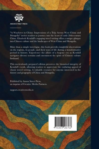 "A Wayfarer in China: Impressions of a Trip Across West China and Mongolia" invites readers to journey into the heart of early 20th-century China. Elizabeth Kendall's engaging travel writing offers a unique glimpse into Chinese culture and the landscapes of West China and Mongolia. More than a simple travelogue, this book provides insightful observations on the regions, its people, and their ways of life during a transformative period in history. Experience the allure of a bygone era as Kendall navigates diverse terrains and encounters the spirit of Chinese culture firsthand. This meticulously prepared edition preserves the historical integrity of Kendall's work, allowing readers to appreciate the enduring appeal of classic travel writing. A valuable resource for anyone interested in the history and geography of China and Mongolia. This work has been selected by scholars as being culturally important, and is part of the knowledge base of civilization as we know it. This work is in the public domain in the United States of America, and possibly other nations. Within the United States, you may freely copy and distribute this work, as no entity (individual or corporate) has a copyright on the body of the work. Scholars believe, and we concur, that this work is important enough to be preserved, reproduced, and made generally available to the public. We appreciate your support of the preservation process, and thank you for being an important part of keeping this knowledge alive and relevant.
