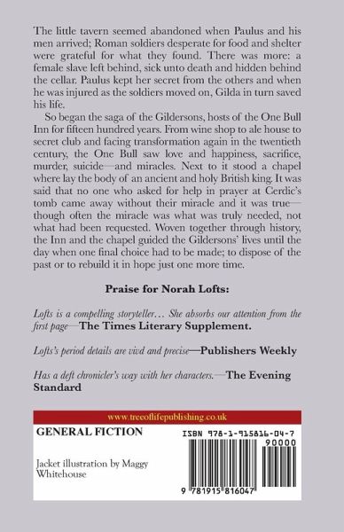 The little tavern seemed abandoned when Paulus and his men arrived; Roman soldiers desperate for food and shelter were grateful for what they found. There was more: a female slave left behind, sick unto death and hidden behind the cellar. Paulus kept her secret from the others and when he was injured as the soldiers moved on, Gilda in turn saved his life. So began the saga of the Gildersons, hosts of the One Bull Inn for fifteen hundred years. From wine shop to ale house to secret club and facing transformation again in the twentieth century, the One Bull saw love and happiness, sacrifice, murder, suicide-and miracles. Next to it stood a chapel where lay the body of an ancient and holy British king. It was said that no one who asked for help in prayer at Cerdic's tomb came away without their miracle and it was true- though often the miracle was what was truly needed, not what had been requested. Woven together through history, the Inn and the chapel guided the Gildersons' lives until the day when one final choice had to be made; to dispose of the past or to rebuild it in hope just one more time.