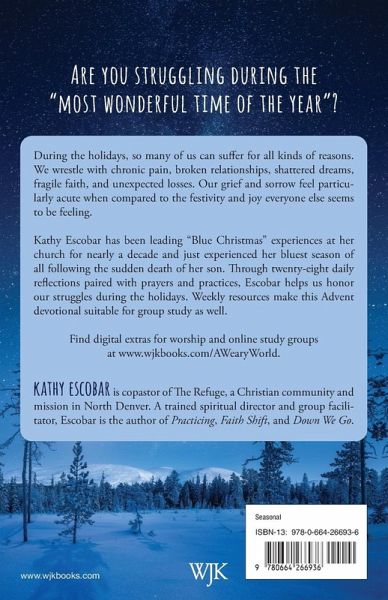 During the holidays, so many of us can suffer for all kinds of reasons. The magnitude of our weary world weighs on our hearts and minds. We wrestle with chronic pain, broken relationships, shattered dreams, fragile faith, and unexpected losses. Our grief and sorrow feel particularly acute when compared to the festivity and joy everyone else seems to be feeling. More and more churches are acknowledging this fact with "Blue Christmas" services (also called "Longest Night" services) and offering resources to give particular support and comfort to those struggling during the "most wonderful time of the year." Kathy Escobar has been leading Blue Christmas experiences at her church for nearly a decade and just experienced her bluest season of all following the sudden death of her son. In A Weary World, Escobar provides twenty-eight daily reflections paired with prayers and practices to honor our struggles during the holidays. Weekly resources make this Advent devotional suitable for group study as well.