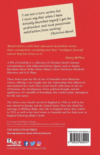 Introduction by Hilary McPhee 'I am not a born writer, but I must say that when I have actually launched myself I get the profoundest and most passionate satisfaction from writing.'-Christina Stead A Web of Friendship is a collection of Christina Stead's intimate correspondence with influential literary figures such as Stanley Burnshaw, Ettore Rella, Nettie Palmer, Clem Christesen, Elizabeth Harrower and A.D. Hope. These letters span the life of one of Australia's most illustrious writers, offering a rare insight into the relationships that influenced and sustained her work. They reveal Stead's reflections on the art of literature, the development of her political thought, and the significance of a handful of friendships that would endure throughout her life and career. The letters cover Stead's arrival in England in 1928, as well as her time abroad in Europe and the United States. They also detail her marriage to William Blake, their life in England where they settled in 1953, as well as her brief return to Australia and her final years in England following Blake's death.