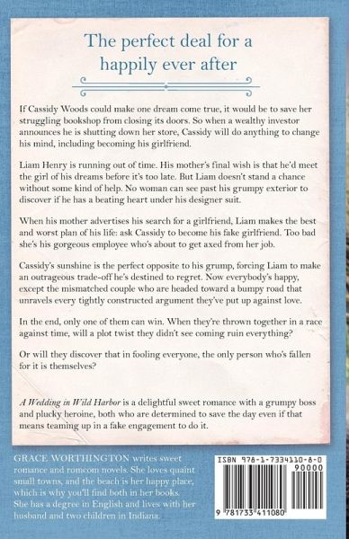 She needs a hero to save her beloved bookshop. He needs a girlfriend to satisfy his mother's dying wish. Can this grump and sunshine couple work out the perfect deal for a happily ever after? If Cassidy Woods could make one dream come true, it would be to save her struggling bookshop from closing its doors. So when a wealthy investor announces he is shutting down her store, Cassidy will do anything to change his mind, including becoming his girlfriend. Liam Henry is running out of time. His mother's final wish is that he'd meet the girl of his dreams before it's too late. But Liam doesn't stand a chance without some kind of help. No woman can see past his grumpy exterior to discover if he has a beating heart under his designer suit. When his mother advertises his search for a girlfriend, Liam makes the best and worst plan of his life: ask Cassidy to become his fake girlfriend. Too bad she's his gorgeous employee who's about to get axed from her job. Cassidy's sunshine is the perfect opposite to his grump, forcing Liam to make an outrageous trade-off he's destined to regret. Now everybody's happy, except the mismatched couple who are headed toward a bumpy road that unravels every tightly constructed argument they've put up against love. In the end, only one of them can win. When they're thrown together in a race against time, will a plot twist they didn't see coming ruin everything? Or will they discover that in fooling everyone, the only person who's fallen for it is themselves? A delightful sweet romance with a grumpy boss and plucky heroine, both who are determined to save the day even if that means teaming up in a fake engagement to do it. This small town sweet romance can be read as a standalone. The series follows four siblings as they find love in the small beach town of Wild Harbor. It's a clean romance that's heartwarming and always ends with a happily ever after!