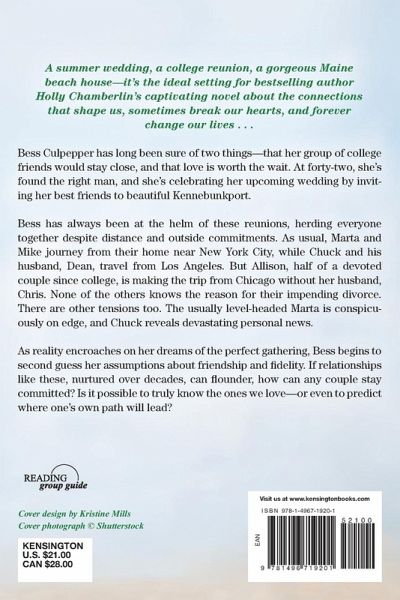A summer wedding, a college reunion, a gorgeous Maine beach house-it's the ideal setting for bestselling author Holly Chamberlin's captivating novel about the connections that shape us, sometimes break our hearts, and forever change our lives . . . Bess Culpepper has long been sure of two things-that her group of college friends would stay close, and that love is worth the wait. At forty-two, she's found the right man, and she's celebrating her upcoming wedding by inviting her best friends to beautiful Kennebunkport. Bess has always been at the helm of these reunions, herding everyone together despite distance and outside commitments. As usual, Marta and Mike journey from their home near New York City, while Chuck and his husband, Dean, travel from Los Angeles. But Allison, half of a devoted couple since college, is making the trip from Chicago without her husband, Chris. None of the others knows the reason for their impending divorce. There are other tensions too. The usually level-headed Marta is conspicuously on edge, and Chuck reveals devastating personal news. As reality encroaches on her dreams of the perfect gathering, Bess begins to second guess her assumptions about friendship and fidelity. If relationships like these, nurtured over decades, can flounder, how can any couple stay committed? Is it possible to truly know the ones we love-or even to predict where one's own path will lead?
